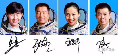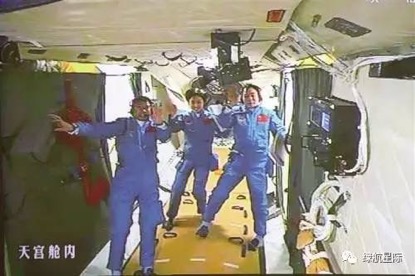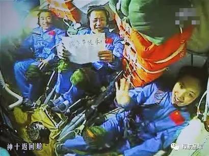 聂海胜、张晓光、王亚平在“神十”返回舱中送来太空的祝福