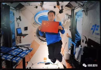 陈冬拍摄的景海鹏正在天宫二号舱内展示五星红旗