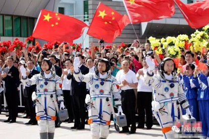 2012年6月16日,景海鹏、刘旺、刘洋3名航天员搭乘神舟九号飞船出征