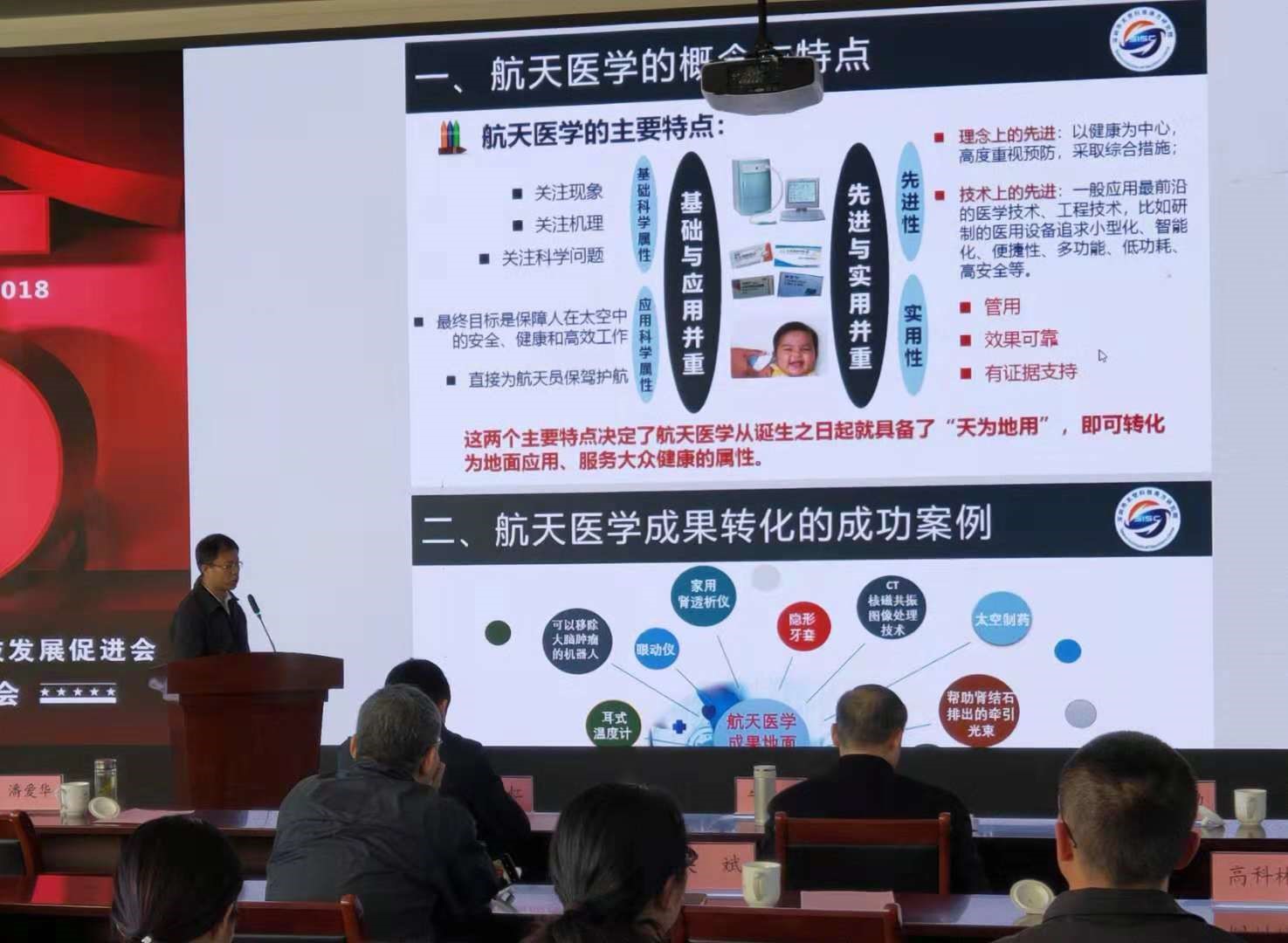 研讨会上吴斌执行院长作《航天医学与大众健康》主题演讲,演讲内容主要围绕航天医学的概念与特点,航天医学成果转化的成功案例以及我国航天医学成果及转化思考等内容开展,探讨航天各种环境因素对机体影响的规律及其发生机理、防护措施,分享了航天医学基础与应用研究的成果转化及应用领域,为服务大众健康提供了健康检测与评价、健康管理方案等思路,得到了与会专家领导的高度评价。