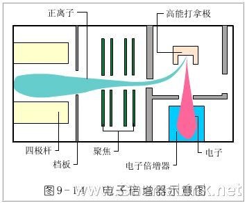 由四极杆分析器出来的离子打到高能打拿极上产生电子,电子经电子倍增器产生电信号,记录不同离子的信号即得质谱。信号增益与倍增器电压有关,提高倍增器电压可以提高灵敏度,但同时会降低倍增器的寿命,因此,应该在保证仪器灵敏度的情况下采用尽量低的倍增器电压。