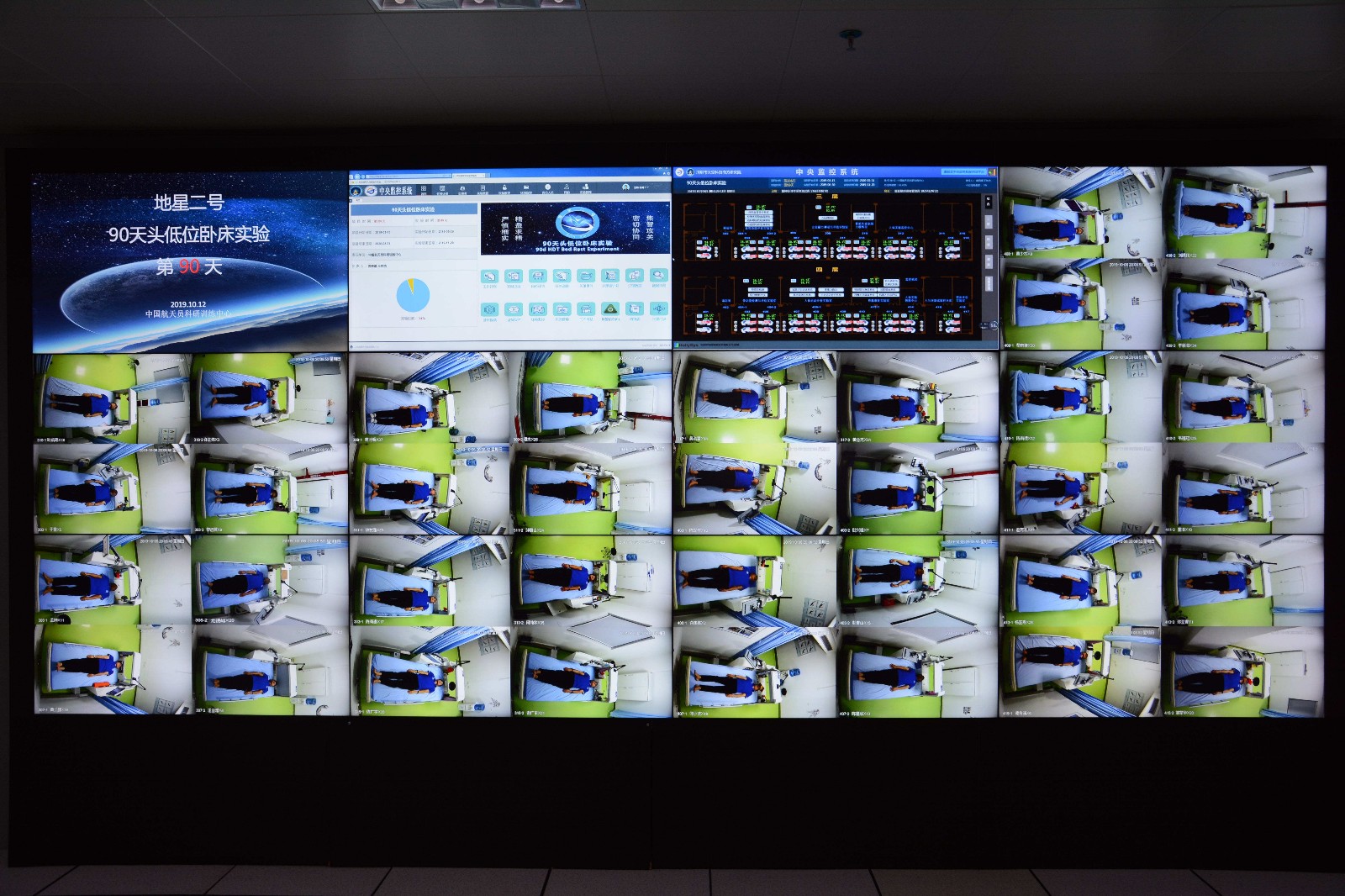 2019年10月13日,在“地星二号”实验现场,中央监控大屏幕上显示着36位健康男性,他们无一例外,全都头低脚高地躺着。要知道,他们吃喝拉撒都必须在床上保持这种姿势,其中第一批卧下的人已经躺了90天了。而从10月13日起,他们就陆陆续续起床了。这不但突破了此前我国航天医学的一项纪录,36名志愿者也创下了一次卧床实验人数的世界之最。他们创造了新的历史!