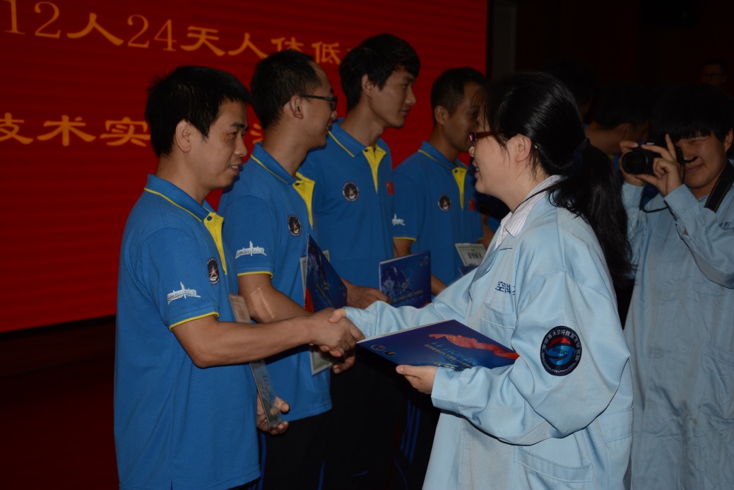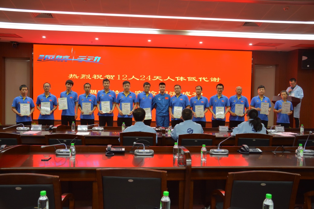 本实验自2018年5月14日启动以来,来自航天员中心、研究院、子源养生、北航、哈工大等国内多家单位包括全体志愿者在内的全体参试人员克服时间紧、任务重、要求高等困难,从全国各地赶赴实验现场,加班加点、攻坚克难、求真务实、高效创新、大力协同、无私奉献,按照实验方案和协同程序完成了适应期、低代谢期、复食期和恢复期各阶段全部实验任务。实验共收集血、尿、便和唾液四类600余份样品,除常规监测外,在6个主要时间节点完成了常规生理指标、血常规、血生化、尿常规生化、代谢激素、营养状态、心理认知等4大类114项生理和心理指标,获得9000余个数据,各项指标满足设定要求,志愿者身体状况良好,保证了实验的圆满成功。